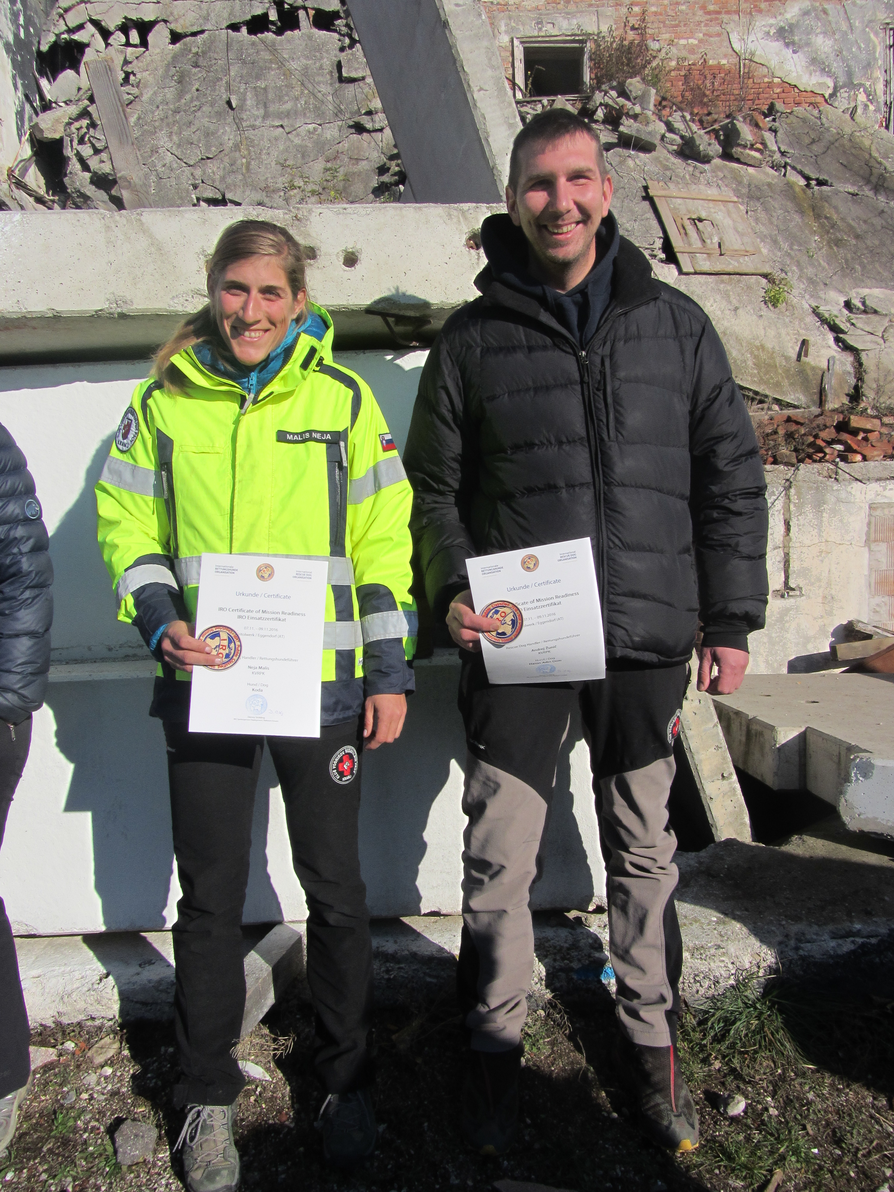 Vsi trije so uspešno opravili preizkus in si s tem pridobili IRO MRT certifikat, kateri jim omogoča delovanje v mednarodnem okolju in članstvo v slovenski enoti za hitre intervencije CZ.